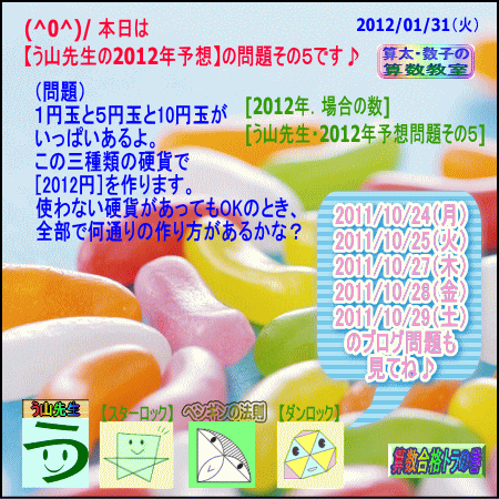 (^0^)/ 本日も【う山先生の2012年予想】の問題その5です♪