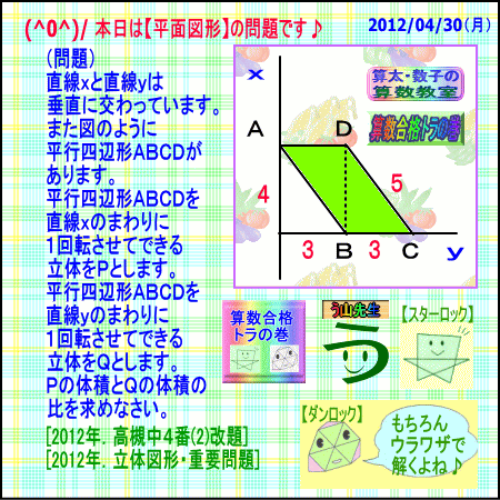 【回転体のウラワザで算数合格】しましょう☆(o^-')b