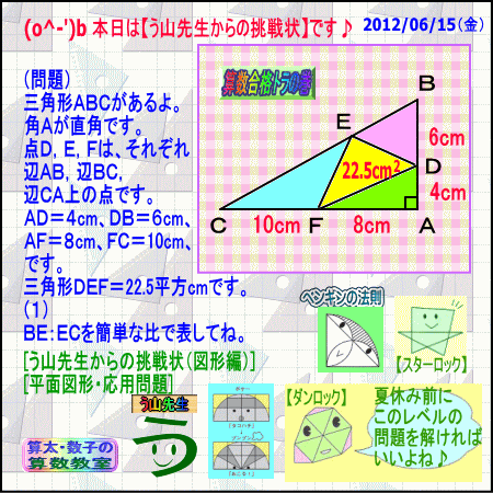 (o^-')b 本日は【う山先生からの挑戦状】です♪