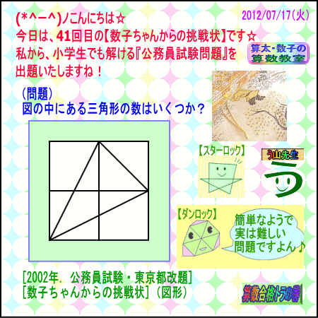 【算太・数子の算数教室】(R)の楽天ブログです☆ [算数合格トラの巻]も見てね!^^