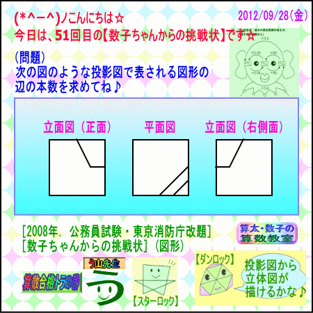 通算51回目、今年32回目の【数子ちゃんからの挑戦状】です♪