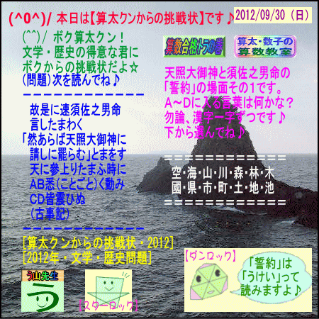 (^0^)/ 本日は【算太クンからの挑戦状】です♪