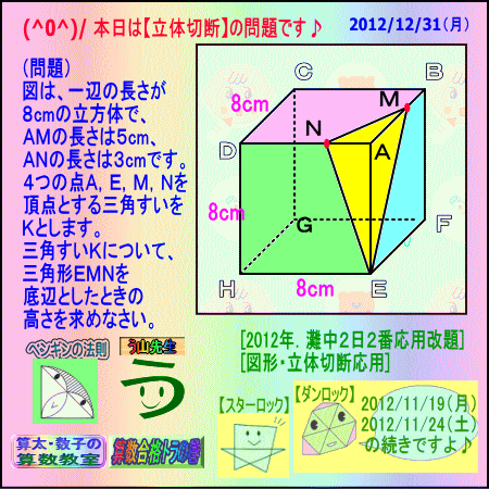 灘中・2日目の[立体切断]の問題・その3です☆