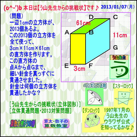 (o^-')b 本日は【う山先生からの挑戦状】です♪
