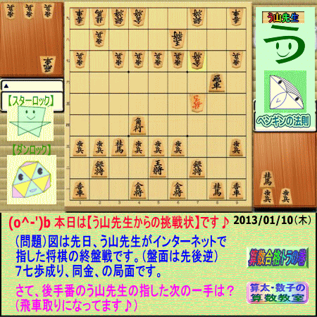 (o^-')b 本日は【う山先生からの挑戦状】です♪
