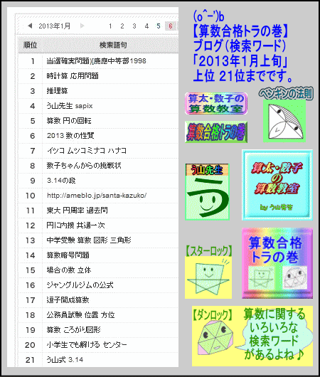 (検索ワード)「2013年1月上旬」上位 21位までです。