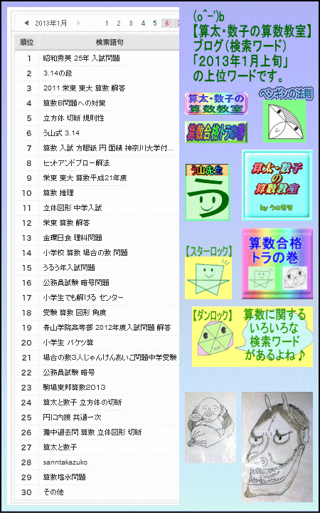 【算太・数子の算数教室】(R)のブログに来てくれました☆(o^-')b