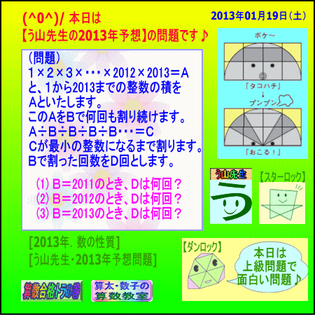 (^0^)/ 本日も【う山先生の2013年予想】の問題です♪