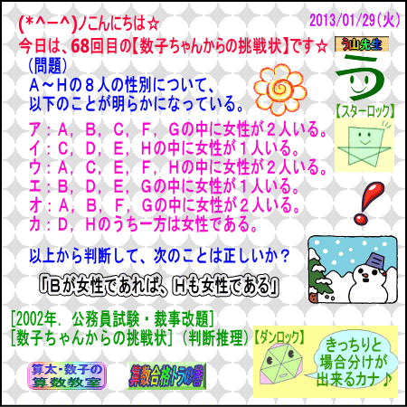 [数子ちゃんからの挑戦状](判断推理)