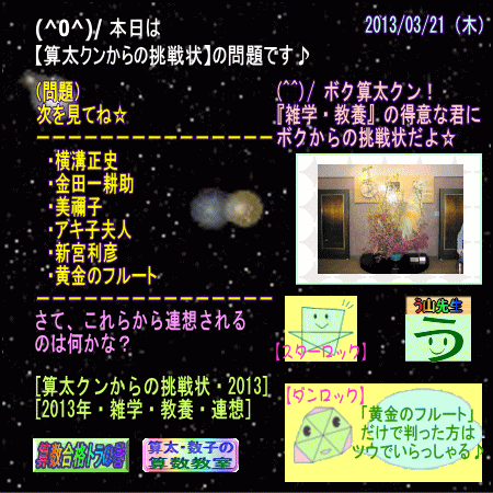 (^0^)/ 本日は【算太クンからの挑戦状】の問題です♪