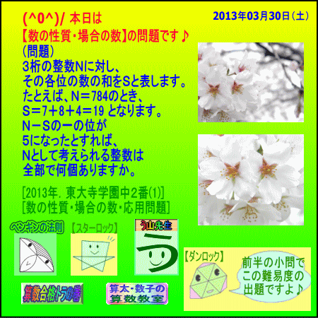 (^0^)/ 本日は【数の性質・場合の数】の問題です♪