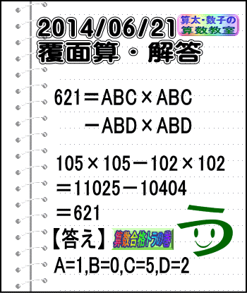 (o^-')bこちらも人気☆[う山先生式・覆面算]の問題です♪