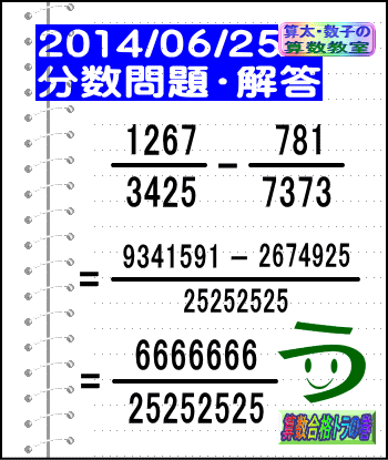 大人気☆[う山先生式・分数計算]の問題です♪
