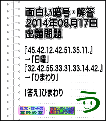 本日は☆[う山先生式・暗号問題]の問題です♪
