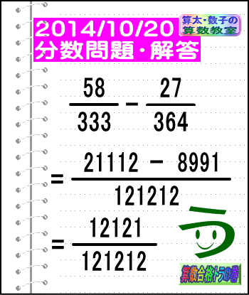 大人気☆[う山先生式・分数計算]の問題です♪