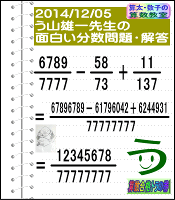 大人気☆[う山先生式・分数計算]の問題です♪
