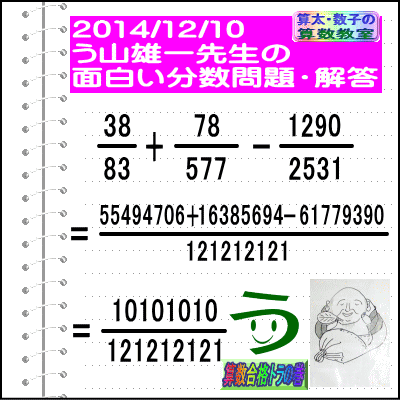 大人気☆[う山先生式・分数計算]の問題です♪