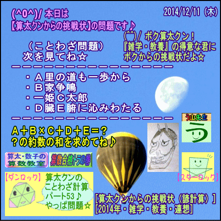 【算太クンからの挑戦状2014】(雑学・教養) です☆