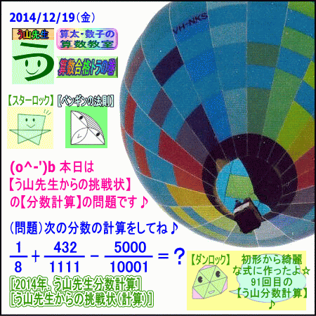 【う山先生・計算問題】(分数・おもしろ計算)91回目