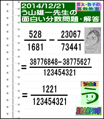 大人気☆[う山雄一先生式の面白い分数問題]です♪
