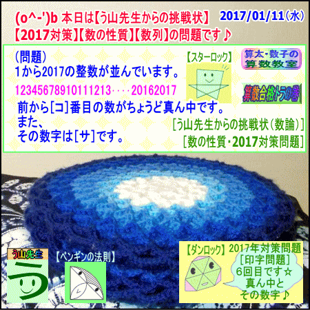 2016/01/04(水)[印字問題・数の性質・数列]1000番目、2017番目