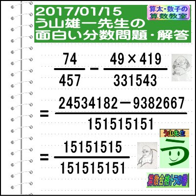 (本日1月15日に相応しい、面白い分数を作成しました♪)