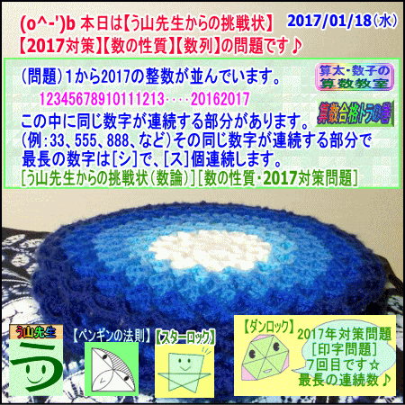 2016/01/04(水)[印字問題・数の性質・数列]1000番目、2017番目