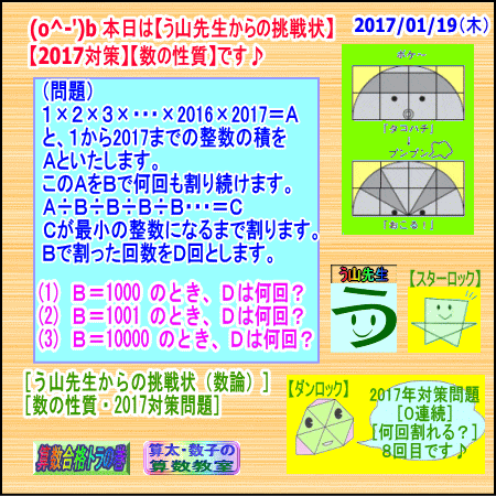 2017/01/19(木)[0連続][何回割れる?]1000,1001,10000