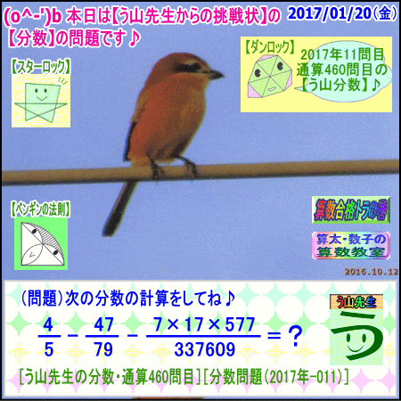 (o^-')b 本日は【う山先生からの挑戦状】の、