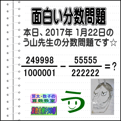 本日は、1月22日に相応しい面白い分数問題を作成しました♪