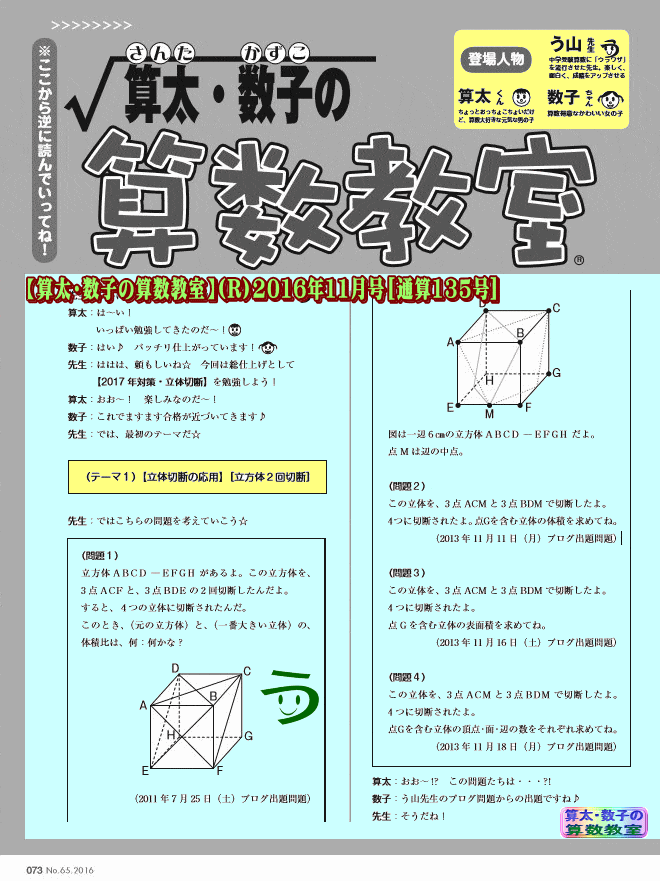 「立体切断」は【算太・数子の算数教室】のウラワザが、