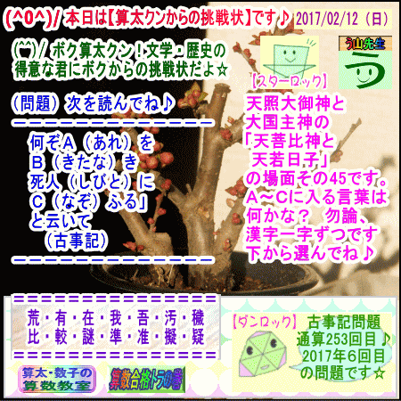 【算太クンからの挑戦状2017】(文学・歴史・古事記) です☆
