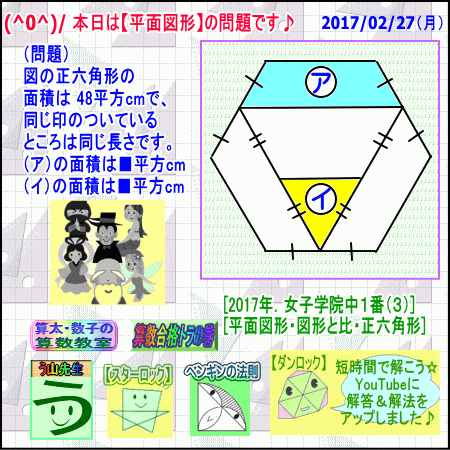 [女子学院中・正六角形][2017年・算数・面白い問題]その9