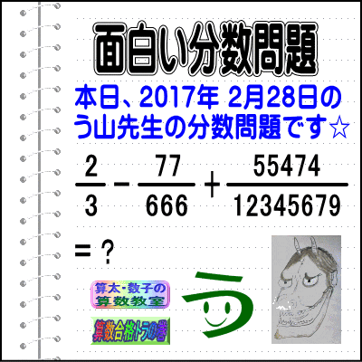 本日は、2月のラストに相応しい、面白い分数問題を作成しました♪