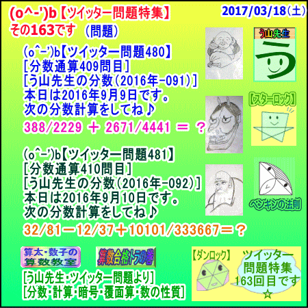 【う山雄一先生・分数】【ツイッター問題】まとめ