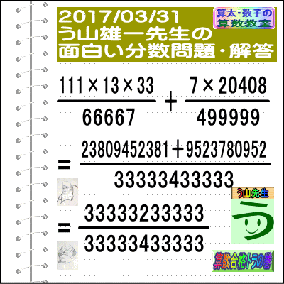2017/03/31(金)[33333233333/33333433333](初形)←本日(o^-')b