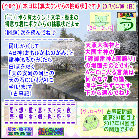 【算太クンからの挑戦状2017】(文学・歴史・古事記) です☆