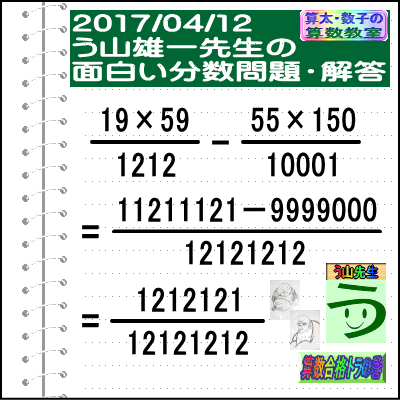 (2016/12/05(月)の分数問題と同じ答えです☆)