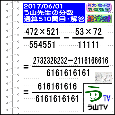 本日は、6月1日に相応しい、面白い分数問題を作成しました☆