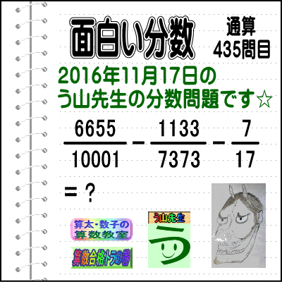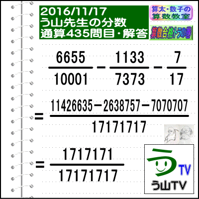 (2016年11月17日(木)の分数 [6655/10001-1133/7373-7/17=?])