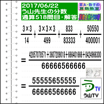 2017/06/22(木)[55555655555/66666566666](初形)←本日(o^-')b