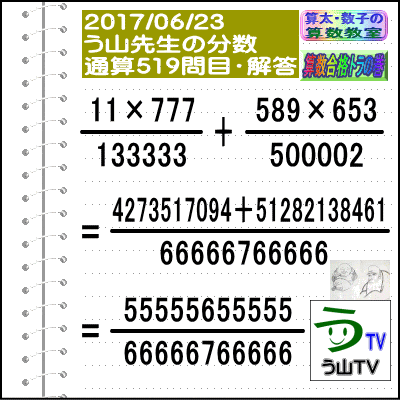 (11×11×777)/166666 + 107693/400001 = 55555655555/66666566666