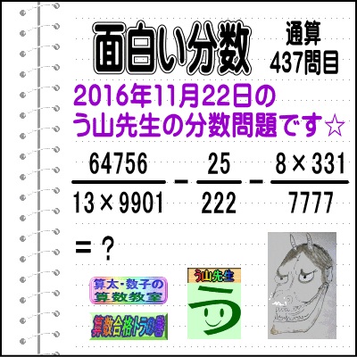 (2016年08月24日(水)の分数問題の答えも同じです☆)