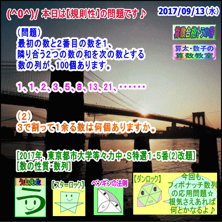 (^0^)/ 本日は【規則性】の問題です♪
