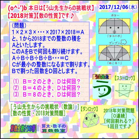 2017/12/06(水)[0連続][何回割れる?]2,4,8