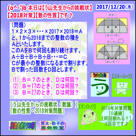 2017/12/20(水)[0連続][何回割れる?]7,17,27