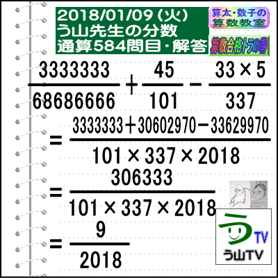 (本日、2018年1月9日に相応しい、面白い分数問題を作りました☆)