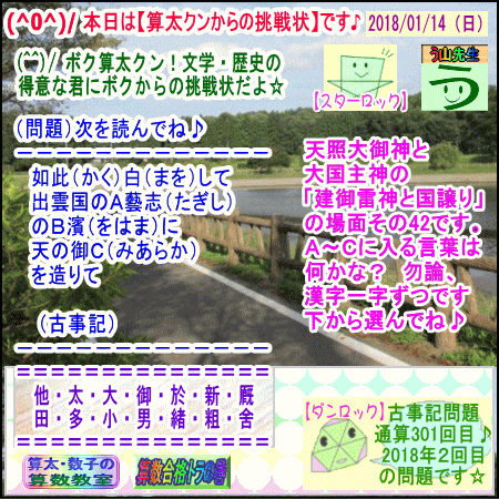 (文学・歴史)[古事記]通算301回【算太クンからの挑戦状・2018】