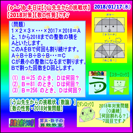 [参考]【う山先生・2018年対策問題】[0連続][何回割れる?]7回目