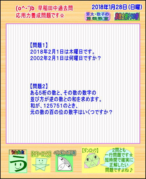 早稲田中の平成14年の過去問からの応用力養成問題を作成しました☆